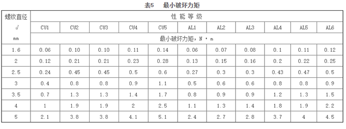 試驗方法按GB /T 3098.10第7章進(jìn)行,測得數(shù)據(jù)應(yīng)符合表3-表5的規(guī)定