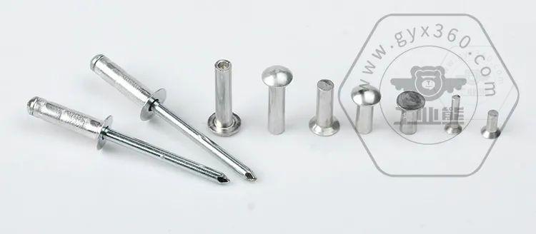 鉚釘是用于將事先制有鉚釘孔的兩個結(jié)構(gòu)件鉚接在一起的緊固件。種類很多,有實心鉚釘,半空心鉚釘,空心鉚釘,管狀鉚釘,無頭鉚釘,標(biāo)牌鉚釘,抽芯鉚釘等形式形式。材料有碳鋼,不銹鋼,銅合金,鋁合金可供選擇。其中鋁合金常用材質(zhì)有5056、5050、5B05等。根據(jù)安裝場合和空間,頭型也是相當(dāng)豐富,主要有半圓頭,平錐頭,沉頭,半沉頭,平頭等。由于鉚接的形式是通過鉚釘自身變形成過盈配合的方式,連接工件對比螺紋連接具有相對較好的抗震防松性能,但是缺點也十分明顯,無法像螺紋連接一樣可以多次拆卸使用。所以不適合用于如設(shè)備維修開口或其他需要經(jīng)常開閉使用部位的連接。