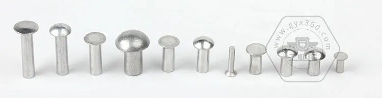 由于鋁具有相對較軟的特性,常溫下壓縮拉伸性能好,因此實心壓鉚鉚釘也常使用鋁或鋁合金制造,實心鉚釘常用材質(zhì)有鋁制鉚釘可直接常溫進(jìn)行鉚接作業(yè)而不必如鋼制鉚釘需進(jìn)行提前預(yù)熱軟化工作,可用于非結(jié)構(gòu)件或負(fù)載較小的結(jié)構(gòu)件連接。實心鉚釘廣泛的應(yīng)用于刀具、文具賬冊、鎖具、頭盔汽車五金箱包、童車、汽車離合器鋼片、摩托車零配件以及家用電器等。