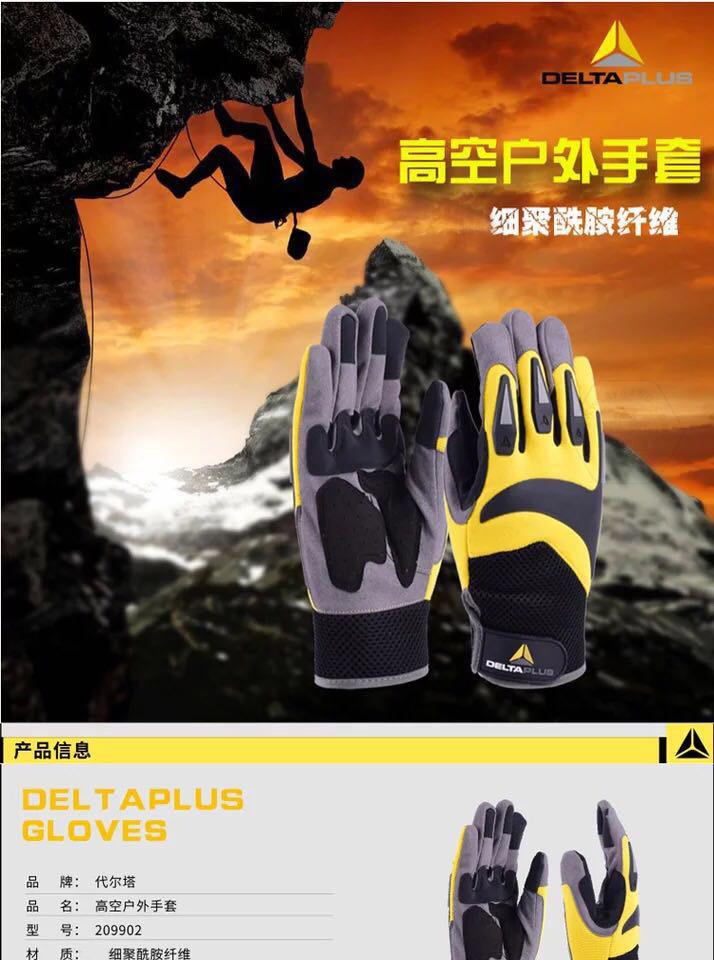 商品名稱:代爾塔 高空戶外運動手套 適用于攀巖繩索作業(yè) 耐磨防護透氣舒.適安.全騎行 209902 黃/黑色 一副(2只)