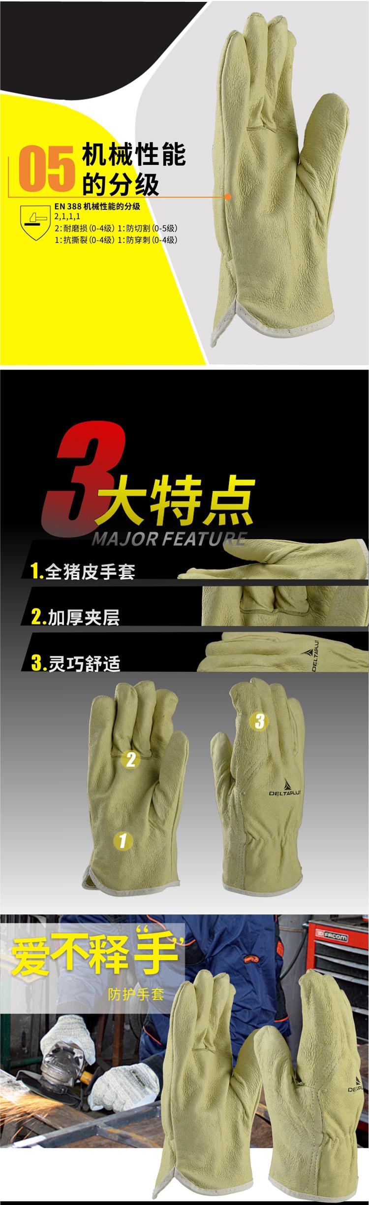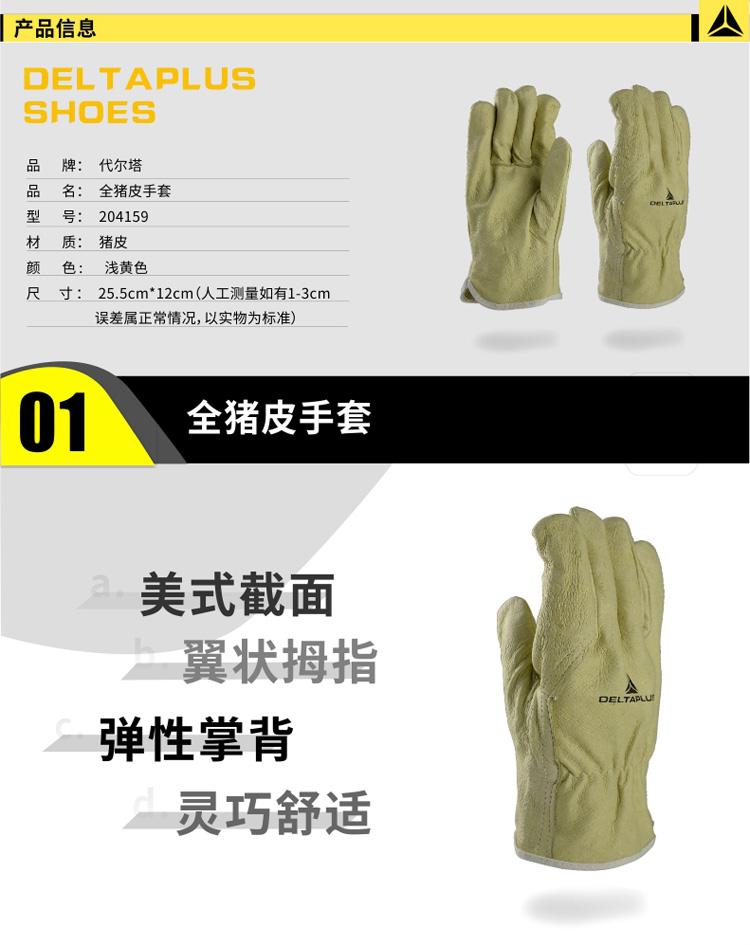 商品名稱(chēng):代爾塔 全豬皮搬運(yùn)勞保手套 耐磨透氣靈巧安.全手套 機(jī)械加工修理造船204159 淺黃色9#